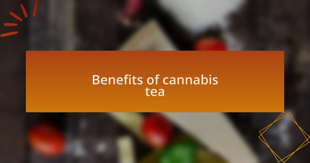 Another significant benefit of cannabis tea is its potential to ease anxiety and promote relaxation. During a particularly stressful week, I made a pot of cannabis tea with lemon and honey, and it truly transformed my evenings into a peaceful ritual. The calming effects lingered, and I noticed how the tea helped me unwind after a long day. Don’t you think that a calming drink can make a world of difference when you’re trying to relax?